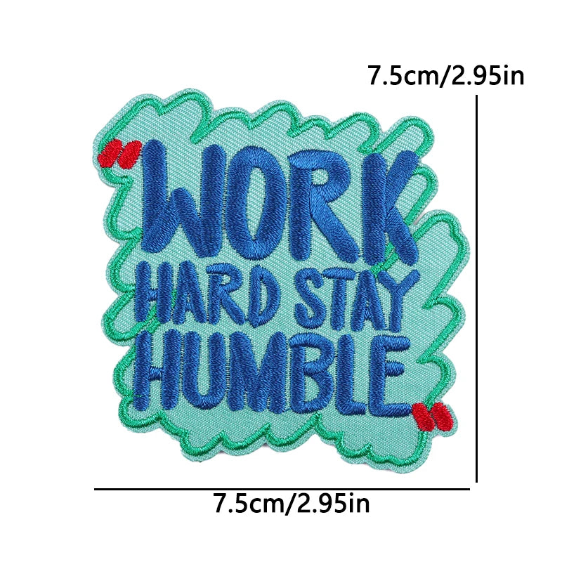 Quote 'Work Hard Stay Humble' Embroidered Patch Description: