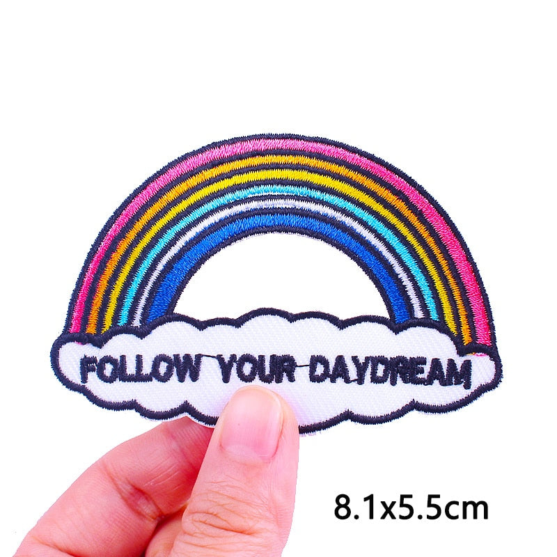 Rainbow 'Follow Your Daydream' Embroidered Sew Iron On Patch Description: