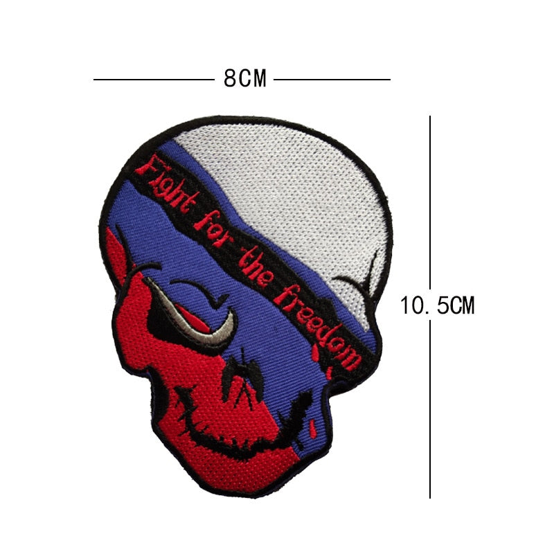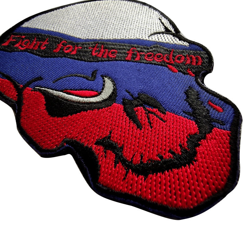 We recommend sewing on this Russia Flag Skull 'Fight For The Freedom' Embroidered Sew On Velcro Patch for jackets, vests and heavy duty use. This Russia Flag Skull 'Fight For The Freedom' Embroidered Sew On Velcro Patch can be ironed on to denim items.