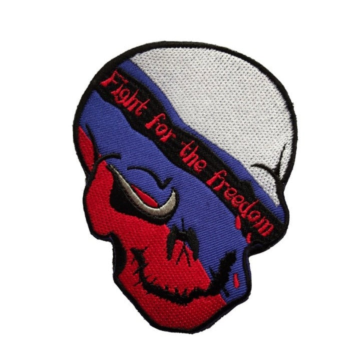 Turn some heads with our Russia Flag Skull 'Fight For The Freedom' Embroidered Sew On Velcro Patch! Our Russia Flag Skull 'Fight For The Freedom' Embroidered Sew On Velcro Patch is great for adding to denim jackets, bags, and more. Our Russia Flag Skull 'Fight For The Freedom' Embroidered Sew On Velcro Patch is made for the most demanding of necessities.