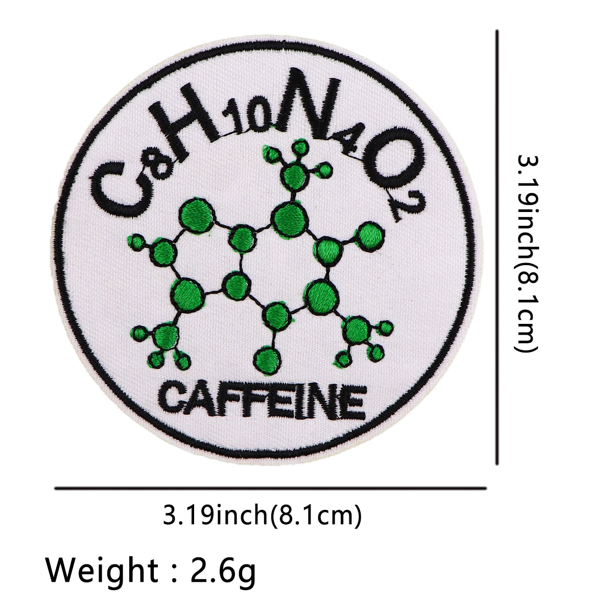 Science ‘Caffeine Molecule | Round‘ Embroidered Patch Description: