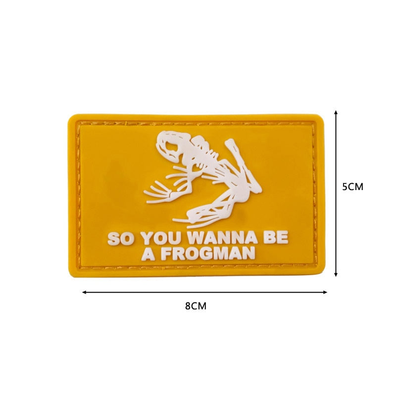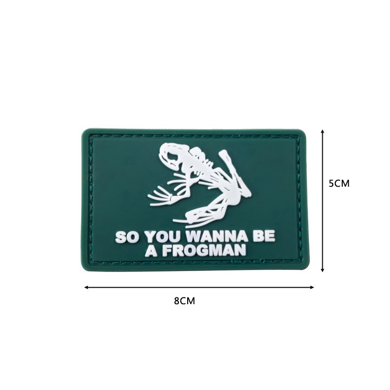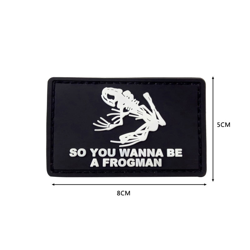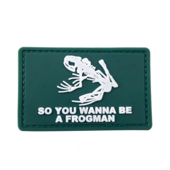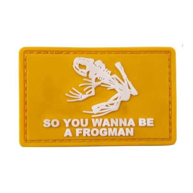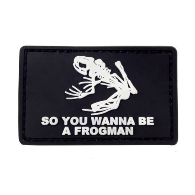 Turn some heads with our Skeleton Frog 'So You Wanna Be A Frogman' PVC Rubber Velcro Patch! Our Skeleton Frog 'So You Wanna Be A Frogman' PVC Rubber Velcro Patch is durable and incredibly bold. This Skeleton Frog 'So You Wanna Be A Frogman' PVC Rubber Velcro Patch is made for the most demanding of necessities.