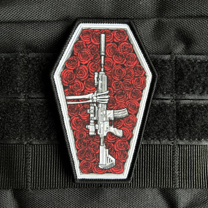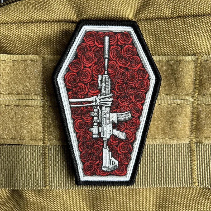 Order your Skeleton Hand 'Roses and Gun' Embroidered Velcro Patch today!