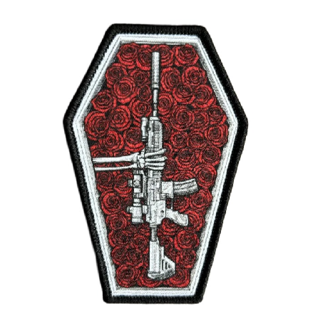 Skeleton Hand 'Roses and Gun' Embroidered Velcro Patch Description:
