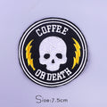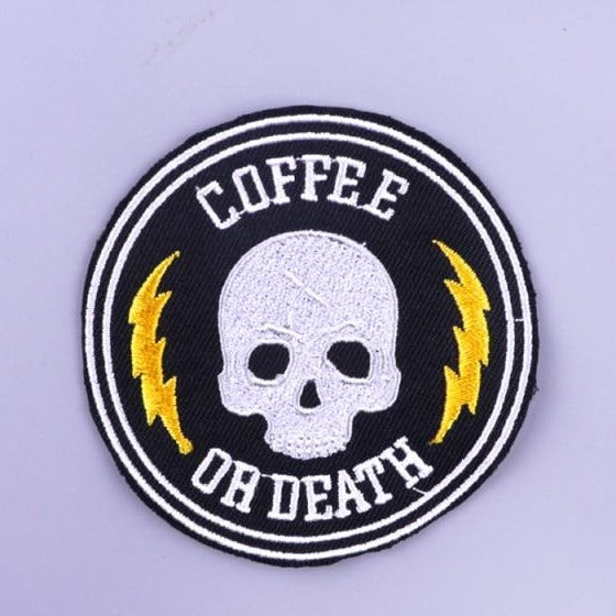 Order your Skull 'Coffee Or Death' Embroidered Sew Iron On Patch today!