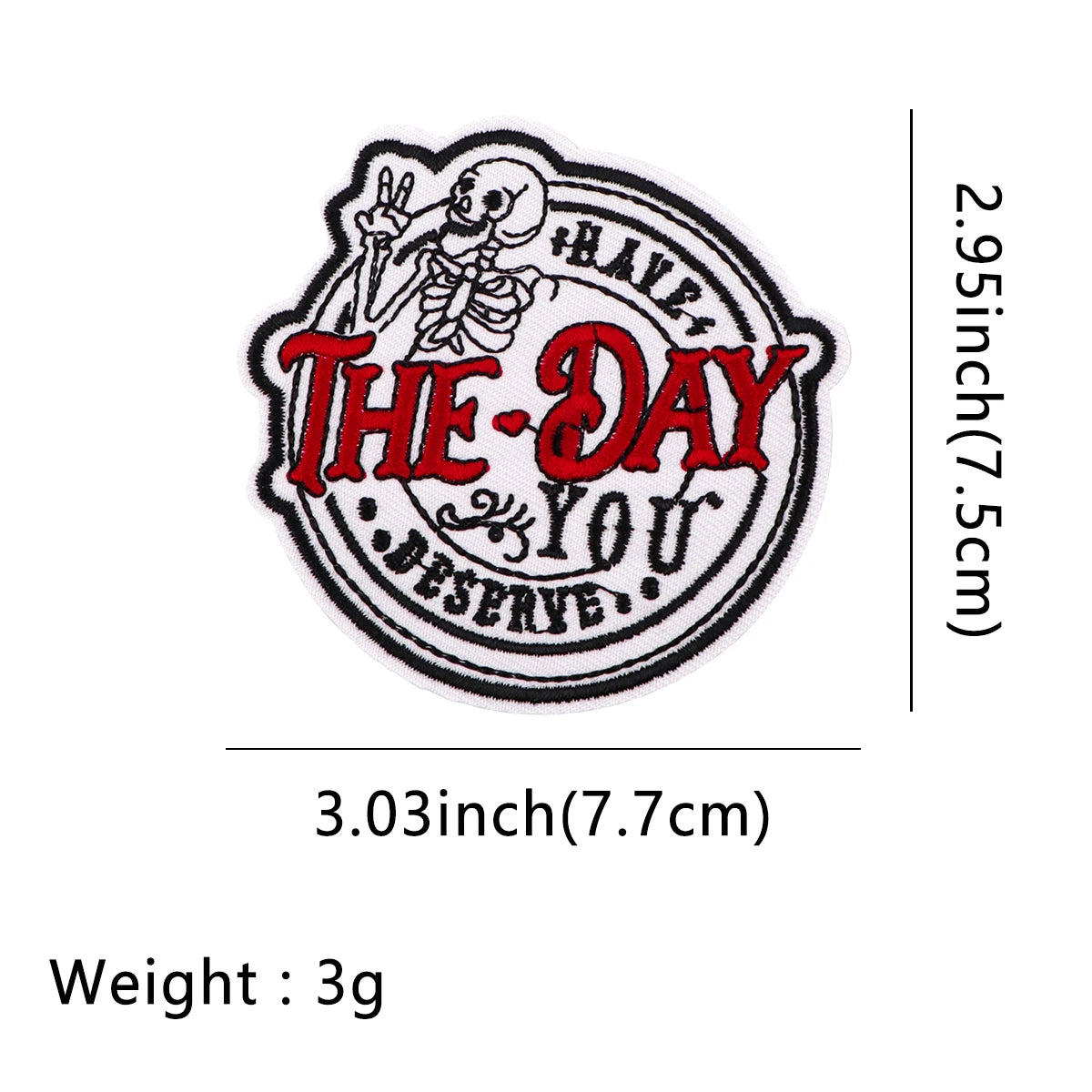 Skull 'Have The Day You Deserve' Embroidered Patch Description: