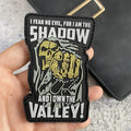 Each Skull 'I Fear No Evil, For I Am The Shadow and Own The Valley' PVC Rubber Velcro Patch is made of 100% PVC for durability and rubber for crisp clean colors. It comes to you individually poly bagged. Great Skull 'I Fear No Evil, For I Am The Shadow and Own The Valley' PVC Rubber Velcro Patch for all groups and individuals looking to share their individual styles.