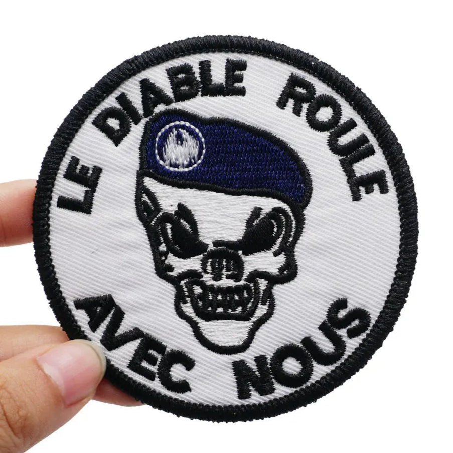 Skull 'Le Diable Roule Avec Nous' Embroidered Patch Description:
