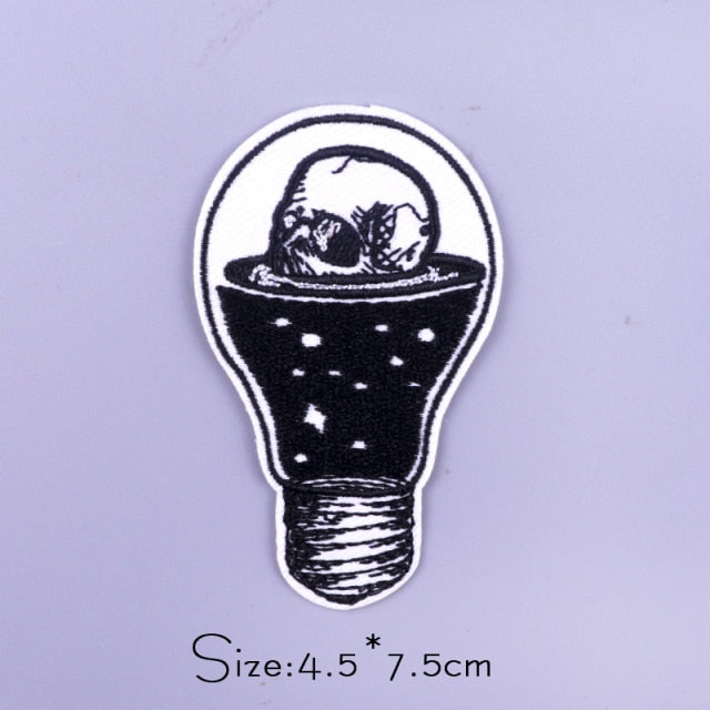 Order your Skull 'Light Bulb' Embroidered Sew Iron On Patch today!