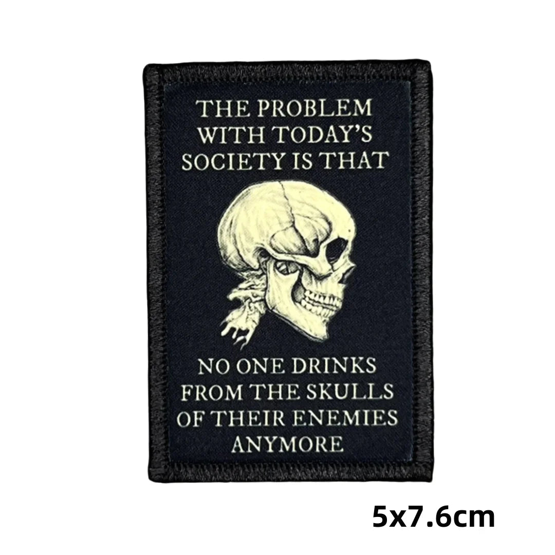 Skull 'No One Drinks From The Skulls of Their Enemies' Embroidered Velcro Patch Description:
