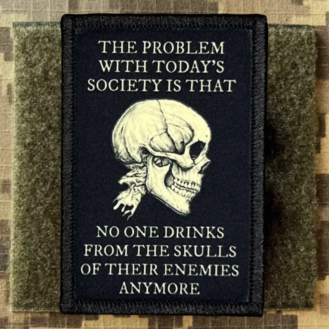 Order your Skull 'No One Drinks From The Skulls of Their Enemies' Embroidered Velcro Patch today!