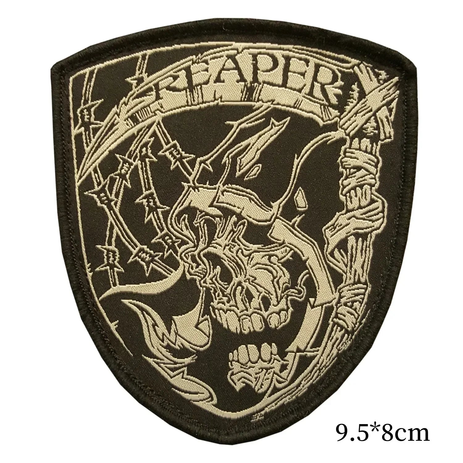 Skull 'Reaper' Embroidered Velcro Patch Description: