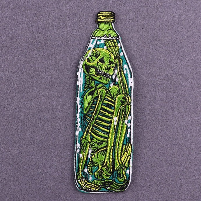 Turn some heads with our Skull 'Skeleton In A Bottle' Embroidered Patch! Our Skull 'Skeleton In A Bottle' Embroidered Patch is great for adding to denim jackets, bags, and more. Our Skull 'Skeleton In A Bottle' Embroidered Patch is made for the most demanding of necessities.