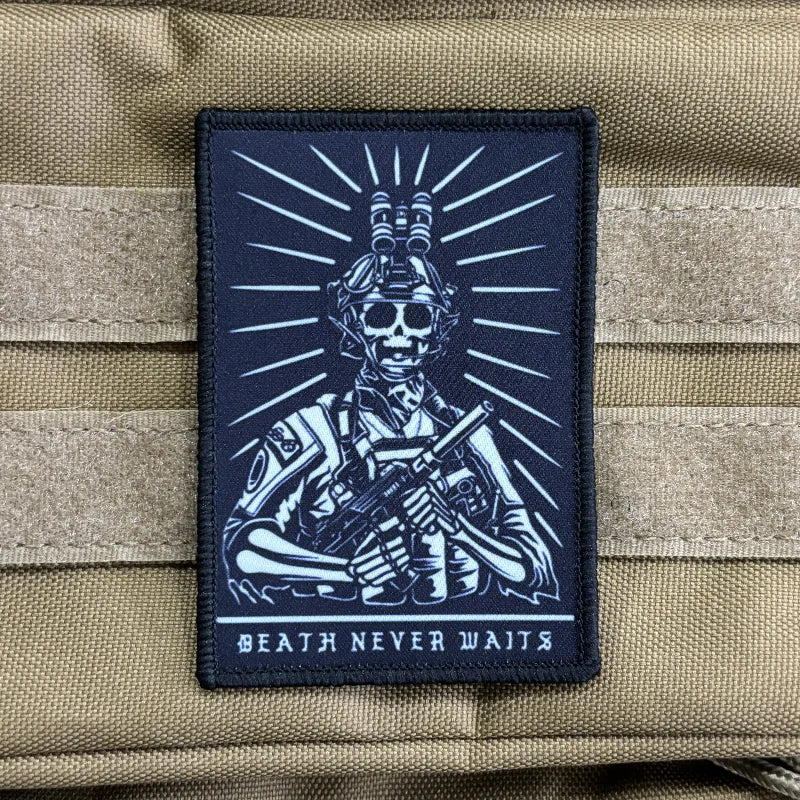 Order your Skull Soldier 'Death Never Waits' Embroidered Velcro Patch today!