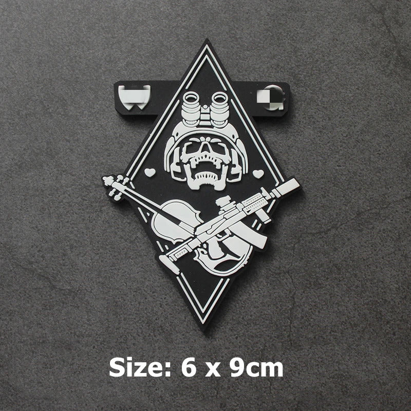 Turn some heads with our Skull Soldier 'Tactical Gun' PVC Rubber Velcro Patch! Our Skull Soldier 'Tactical Gun' PVC Rubber Velcro Patch is durable and incredibly bold. This Skull Soldier 'Tactical Gun' PVC Rubber Velcro Patch is made for the most demanding of necessities.