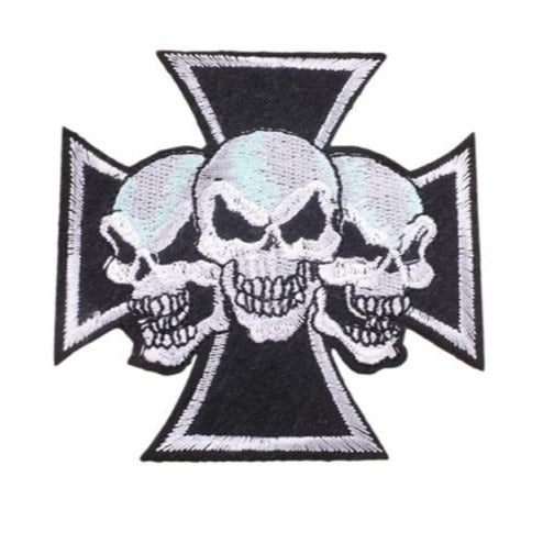Order your Skull 'Three Skulls Cross' Embroidered Sew Iron On Patch today!