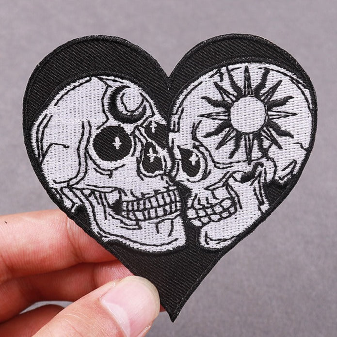 We recommend sewing on this Skulls 'Moon And Sun' Embroidered Patch for jackets, vests and heavy duty use. This Skulls 'Moon And Sun' Embroidered Patch can be ironed on to denim items.