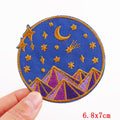 We recommend sewing on this Space 'Night Sky And Mountains' Embroidered Patch for jackets, vests and heavy duty use. This Space 'Night Sky And Mountains' Embroidered Patch can be ironed on to denim items.