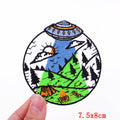 We recommend sewing on this Spaceship 'Camping | Forest' Embroidered Patch for jackets, vests and heavy duty use. This Spaceship 'Camping | Forest' Embroidered Patch can be ironed on to denim items.