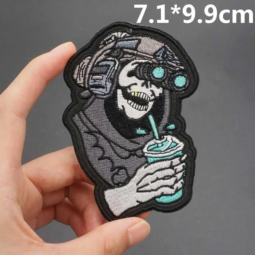 We recommend sewing on this Tactical Skull 'Watching' Embroidered Patch for jackets, vests and heavy duty use. This Tactical Skull 'Watching' Embroidered Patch can be ironed on to denim items.