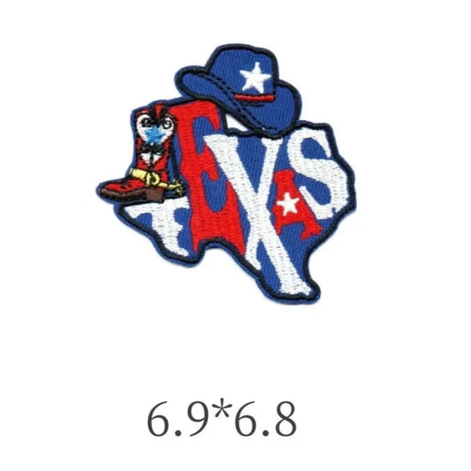 Order your Texas Map 'Cowboy Hat and Boot' Embroidered Patch today!