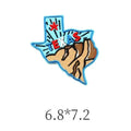 We recommend sewing on this Texas Map 'Desert Mountain' Embroidered Patch for jackets, vests and heavy duty use. This Texas Map 'Desert Mountain' Embroidered Patch can be ironed on to denim items.