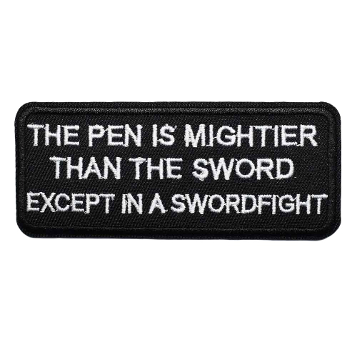 'The Pen Is Mightier Than The Sword Except In A Swordfight' Embroidered Patch Description: