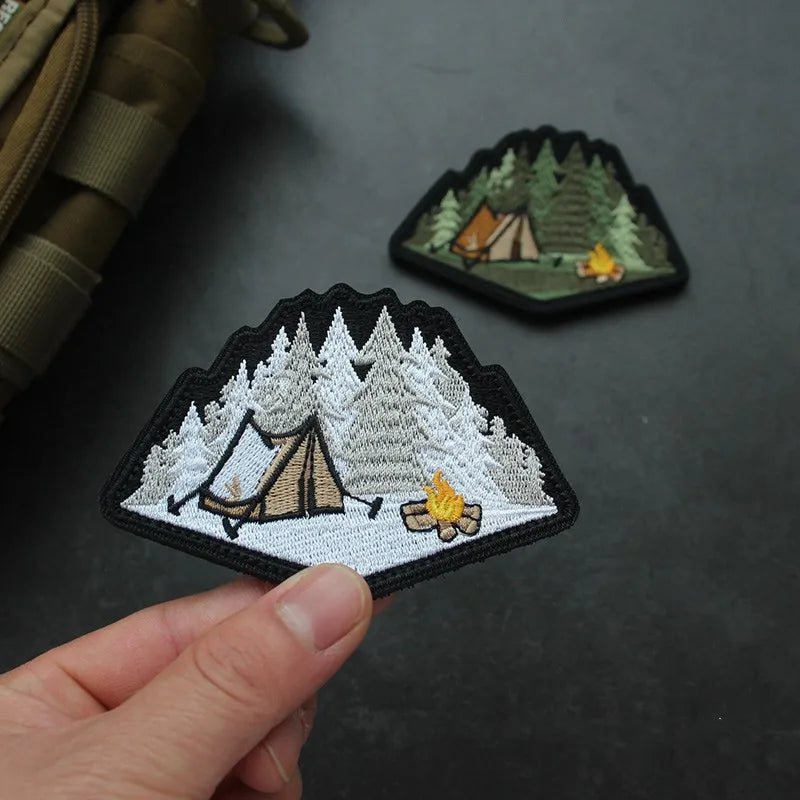 Travel 'Camping | Set of 2' Embroidered Velcro Patch Description: