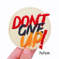 Turn some heads with our Tricolor 'Don't Give Up!' Embroidered Patch! Our Tricolor 'Don't Give Up!' Embroidered Patch is great for adding to denim jackets, bags, and more. Our Tricolor 'Don't Give Up!' Embroidered Patch is made for the most demanding of necessities.