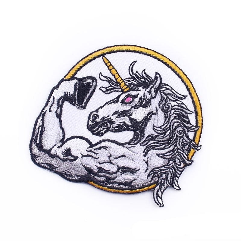 Order your Unicorn 'Flexing' Embroidered Sew Iron On Patch today!