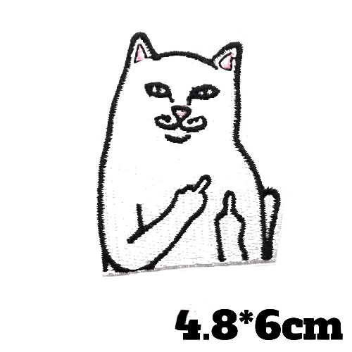 We recommend sewing on this White Cat 'F U' Embroidered Patch for jackets, vests and heavy duty use. This White Cat 'F U' Embroidered Patch can be ironed on to denim items.