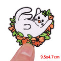 We recommend sewing on this White Cat 'Lying In Flower' Embroidered Patch for jackets, vests and heavy duty use. This White Cat 'Lying In Flower' Embroidered Patch can be ironed on to denim items.